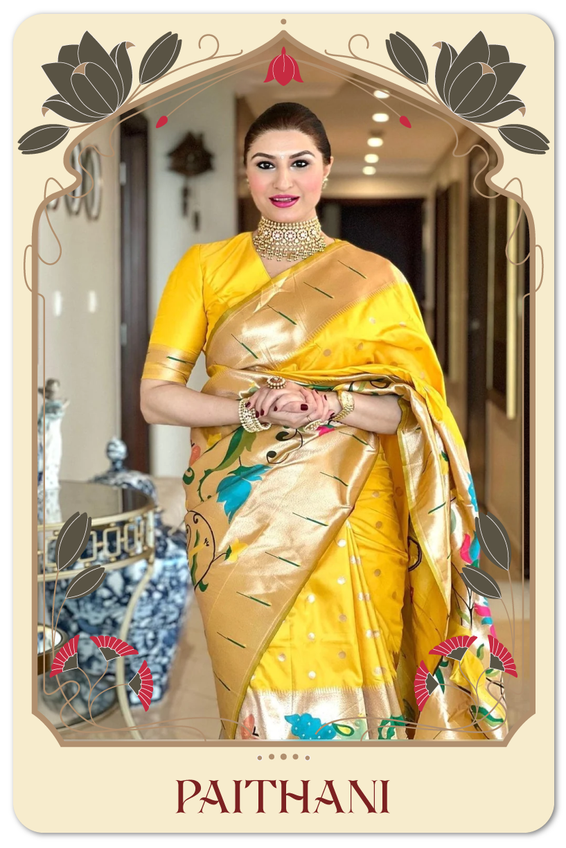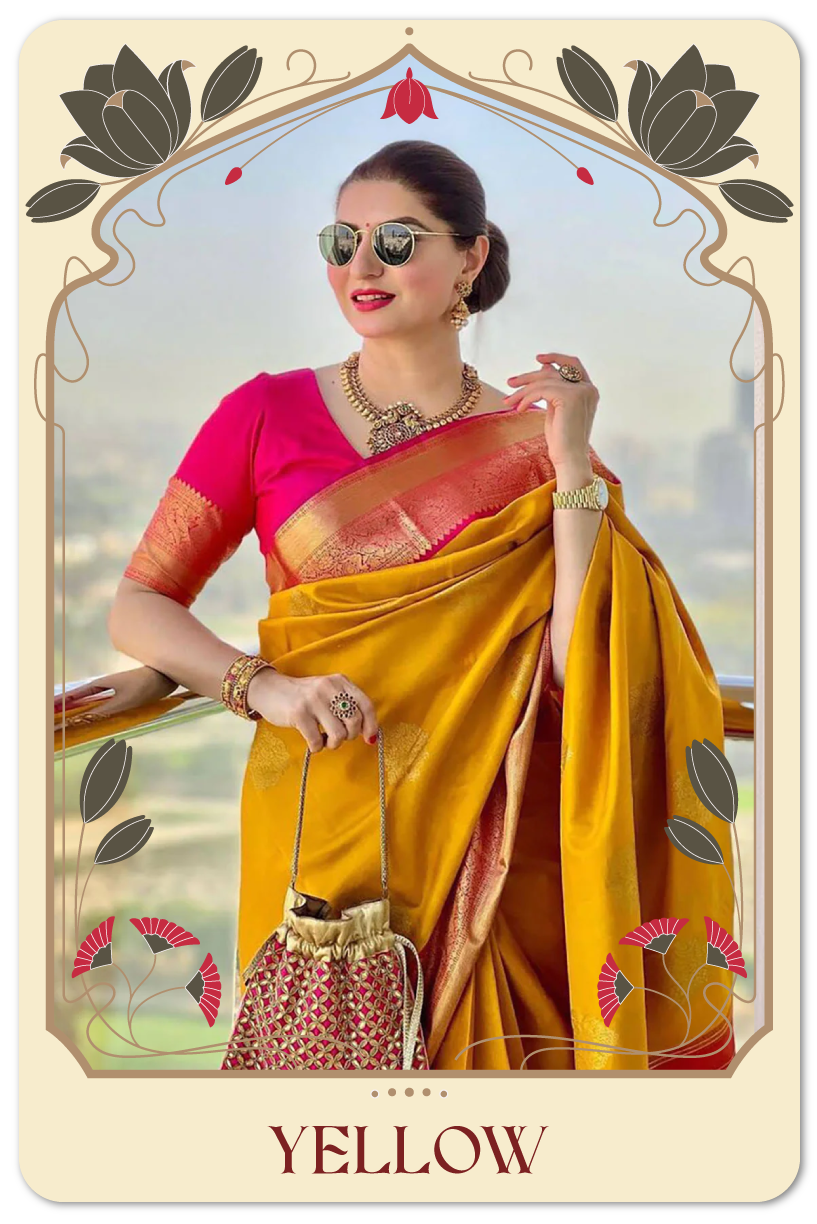 Lemon Yellow & Dark Sky Blue Stylist Designer Lichi Silk Saree